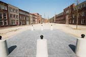 driehoekig hoofdplein wat alleen toegankelijk is voor fiets- en voetverkeer. De